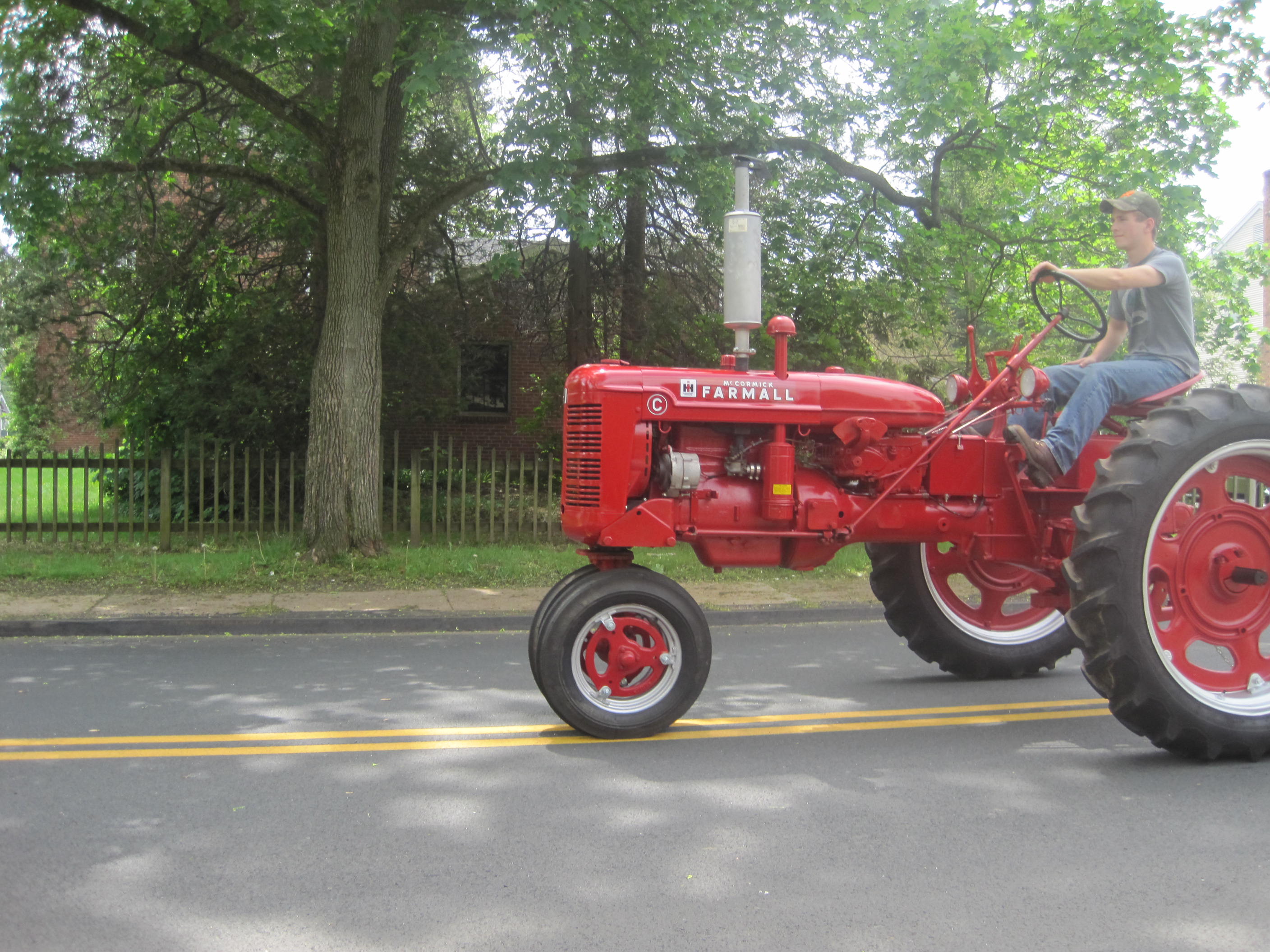 Struck by the incongruity of a farm tractor leading the local Shad Derby parade, I framed my digital shot. The red tractor with its great wheels being the first vehicle in the parade would make Norman Rockwell – if he were alive – inspired. And, in a sense, the tractor at the head symbolized the essence of the farm community my town is and the tradition it celebrates faithfully every year.